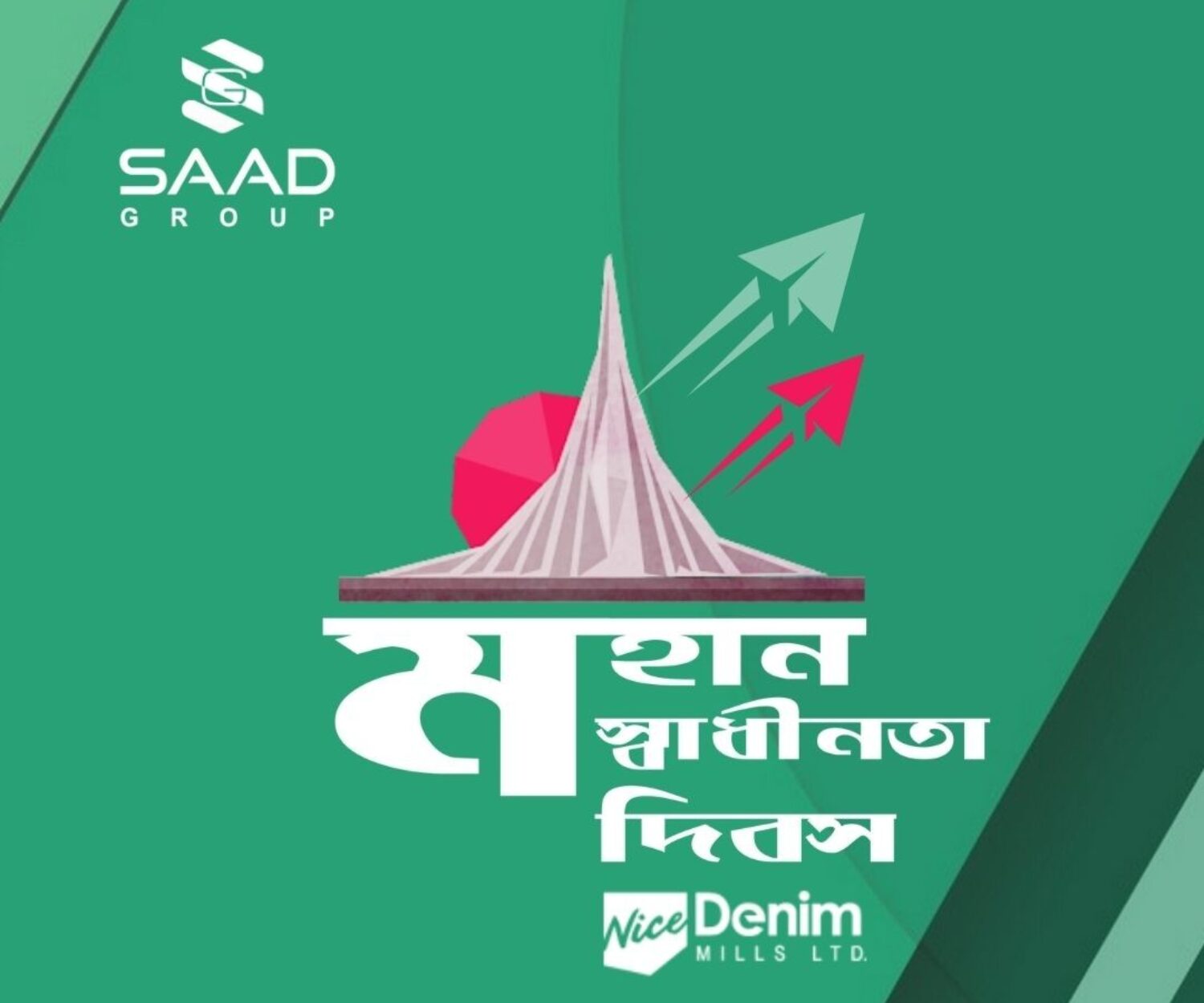 News 25 Mar 2022 স্বাধীনতা দিবসের শুভেচ্ছা। মননে থাকুক স্বাধীনতা, হৃদয়ে থাকুক বিশ্বাস, আত্মা বহন করুক স্মৃতি। স্বাধীনতা দিবসে রাষ্ট্রকে সালাম জানাই আমরা। saadgroup